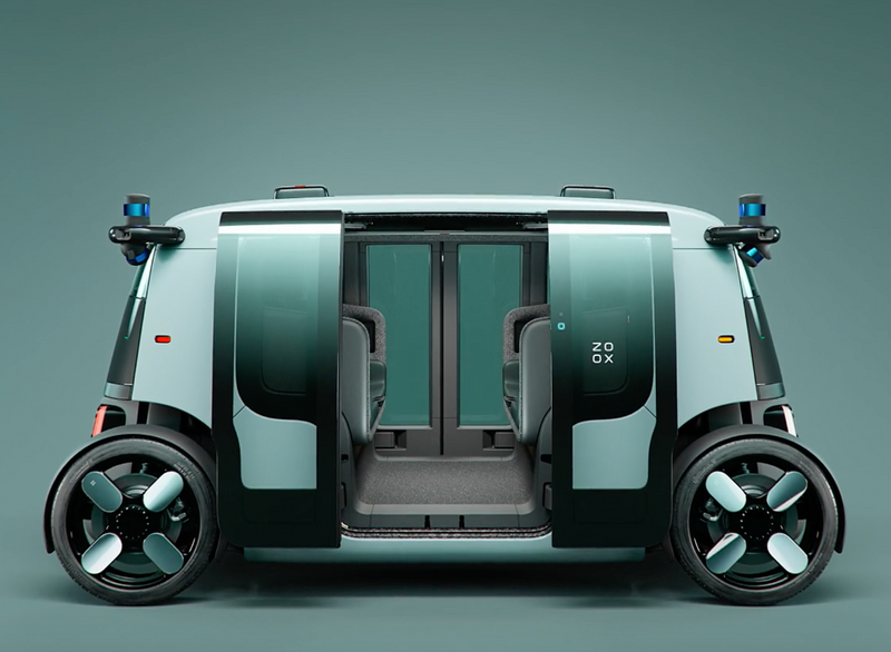 Zoox車體僅有3.63公尺長,車身設計也不分車頭或車尾,能使其不分前後進行雙向行駛,而且左右兩側都設有車門,讓乘客上下車都相當方便。