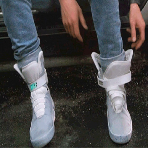 不知是誰提出的概念,但自動繫鞋帶的鞋子最廣為人知的印象必定來自《回到未來》這部電影。去年,Nike真的做出了一款電影中的鞋子 Air Mags,還把這雙紀念版球鞋送給了《回到未來》男主角扮演者 Michael J. Fox。Nike 曾表示這雙鞋會限量銷售,不過似乎只是說說而已。