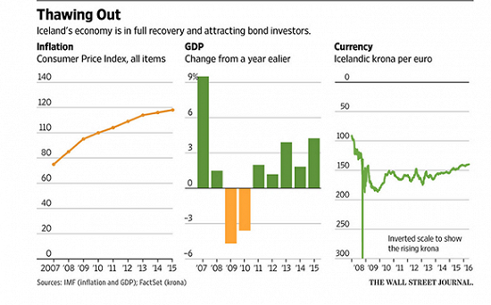 接下來的2009、2010年冰島經濟一片黯淡,但自2011年起冰島經濟就開始逐步復甦,2015年GDP成長速度創下金融危機以來新高。