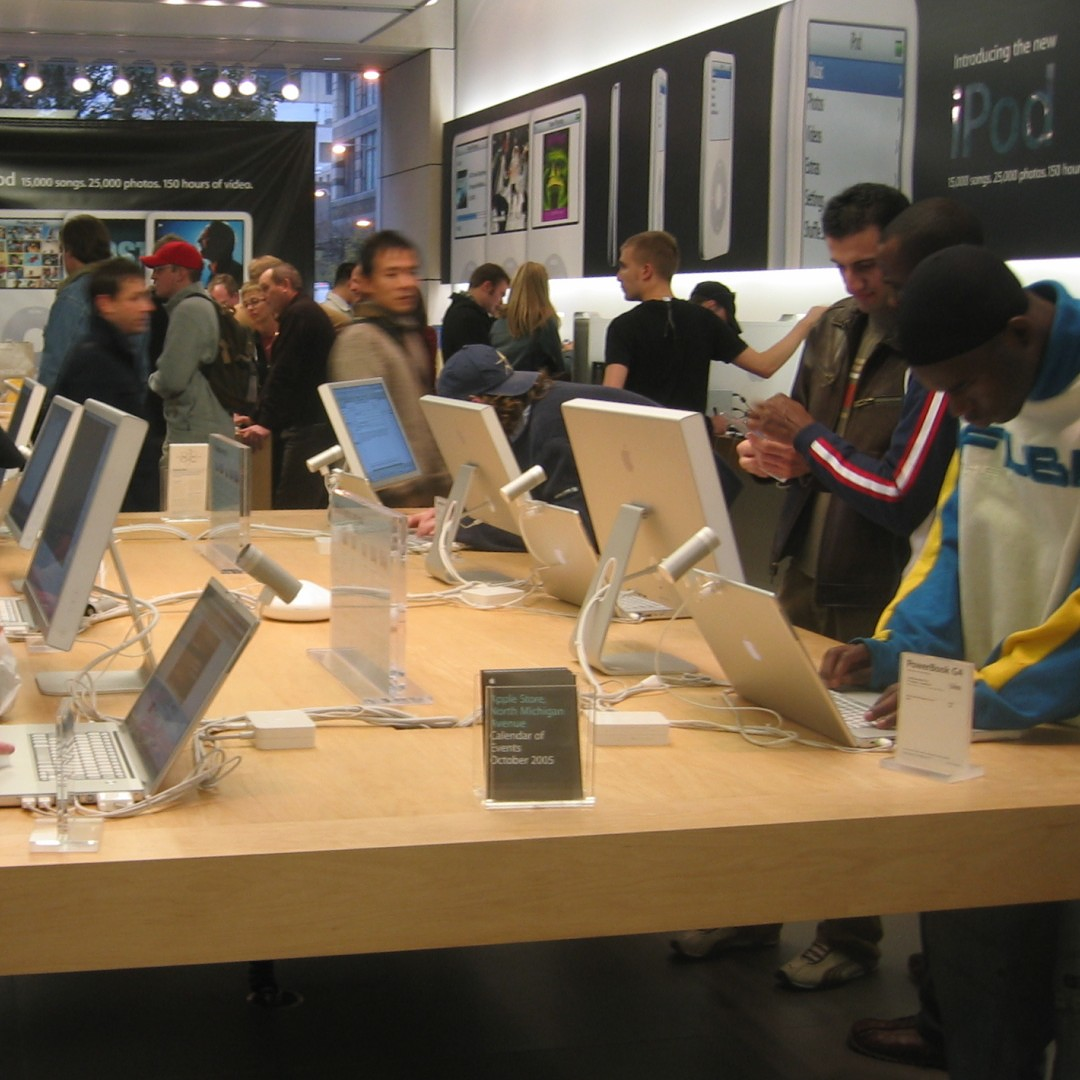 高天花板、透明樓梯、雪白牆壁,店面設計酷感十足的蘋果店,已經接待來客超過10億人次。自從2001年,在維吉尼亞州Tysons Corner Center開設的第一家零售店開始,至今遍布全球的蘋果店,已是蘋果成為世界第一大企業的關鍵支柱。