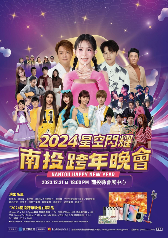 除了晚會表演之外,南投縣政府還準備了iPhone15、Dyson無線吸塵器、50型4K液晶螢幕、Garmin智慧手錶等好禮作為晚會的抽獎禮品,等著民眾來一同參與。