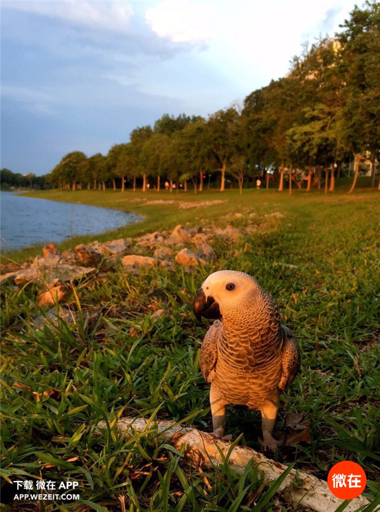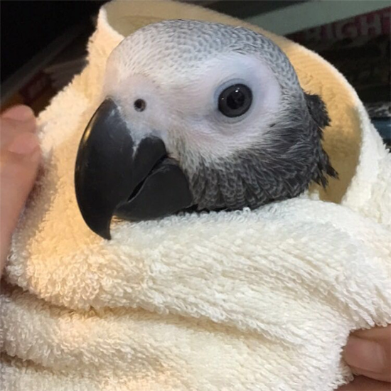 這隻小灰鸚鵡是2016 年1 月1 號來到主人家裡,因此被叫成大順。一開始來主人家吃東西都要用小勺子一點點餵糊糊給牠吃。