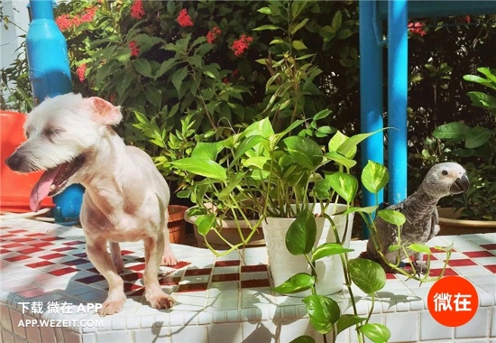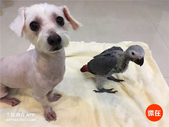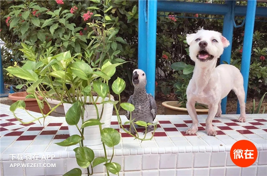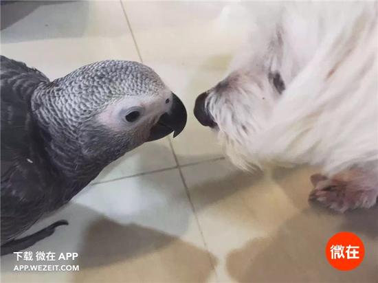 今天要跟你們分享的是@一把傘家的一隻鸚鵡和狗狗的故事,從一開始的陌生到後來實現了生命的大和諧。。。