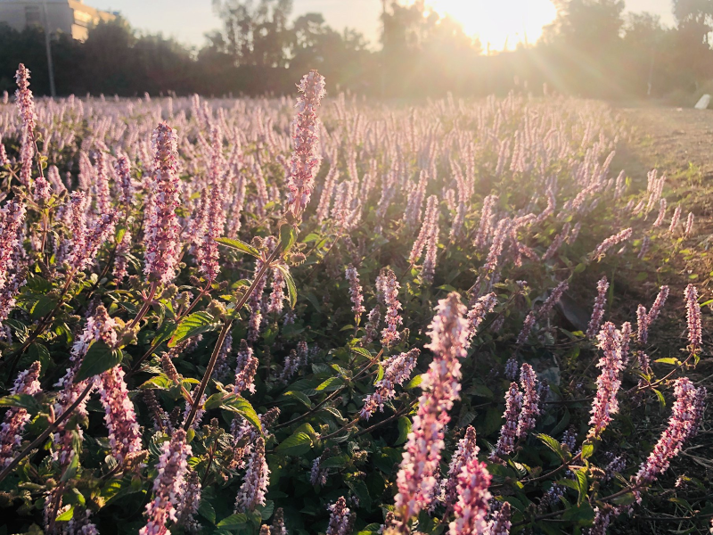 花漾仙境區為副展區,主要種植波斯菊、百日草花與向日葵等不同顏色的花朵;夢幻仙境區則是種植整片仙草花,想要有置身於遼闊無際紫色花海的感受,一定不能錯過!