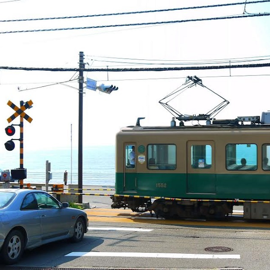江之島電鐵在「鎌倉高校」站至「七里濱」站有臨海路段,可以感受海風的味道,尤其是「鎌倉高校」站,簡易式月臺直接面對相模灣,一下車就是海灘,候車時坐在椅子上,海景盡收眼底,非常浪漫,因此許多電視、動畫都會在鎌倉高校前站取景,讓本站爆紅,引起一股「朝聖」的熱潮,至今盛況空前。車站旁的平交道,是《灌籃高手》 MV裡晴子與櫻木花道相遇的場景,背景還有火車通過,成為觀光客必須拍照的場景,好像沒有拍到平交道和電車,就沒來過江之島。可是許多人拍的照片都是場景對了,電車不對,因為《灌籃高手》 MV裡的電車是「三○○形」,該型車卻不一定會在線上行駛,要拍到一模一樣的場景必須具備運氣,或者不斷等待;替代方案是,至少拍一列塗裝相類似的黃綠配色電車,例如能見度較高的「一○○○形」和「五○○形」,千萬要避開彩繪車或是塗裝不太一樣的「一○形」、「二○○○形」電車。換句話說,想要拍到最經典的畫面,還得先研究電車型號才能「拍」得對味。