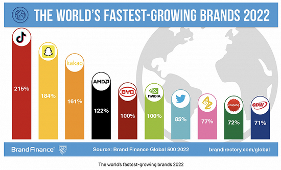 TikTok為榜單新晉品牌,也是發展最快的品牌,一年內價值上漲215%,以590億美元排在第18位。