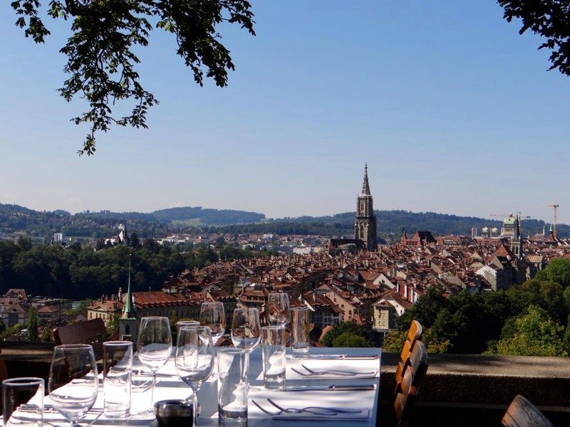 你可以叫我廢柴,但是我對在夏日飲上一杯白葡萄酒完全沒有抵抗力。伯爾尼的酒吧360度都是美景。我站在玫瑰莊園飯店(Restaurant Rosengarten)的陽台上拍下了這張照片。