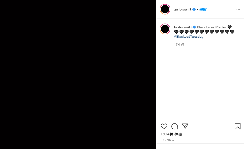 而這項「暗黑星期二」(Blackout Tuesday)運動隨即也擴展到音樂界之外,許多運動組織也紛紛加入響應,不只是NBA官方社群網站停止更新一天,包括柯瑞(Stephen Curry)、詹姆士(LeBron James)等知名球星也在社群平台上分享了支持「暗黑星期二」(Blackout Tuesday)的照片。