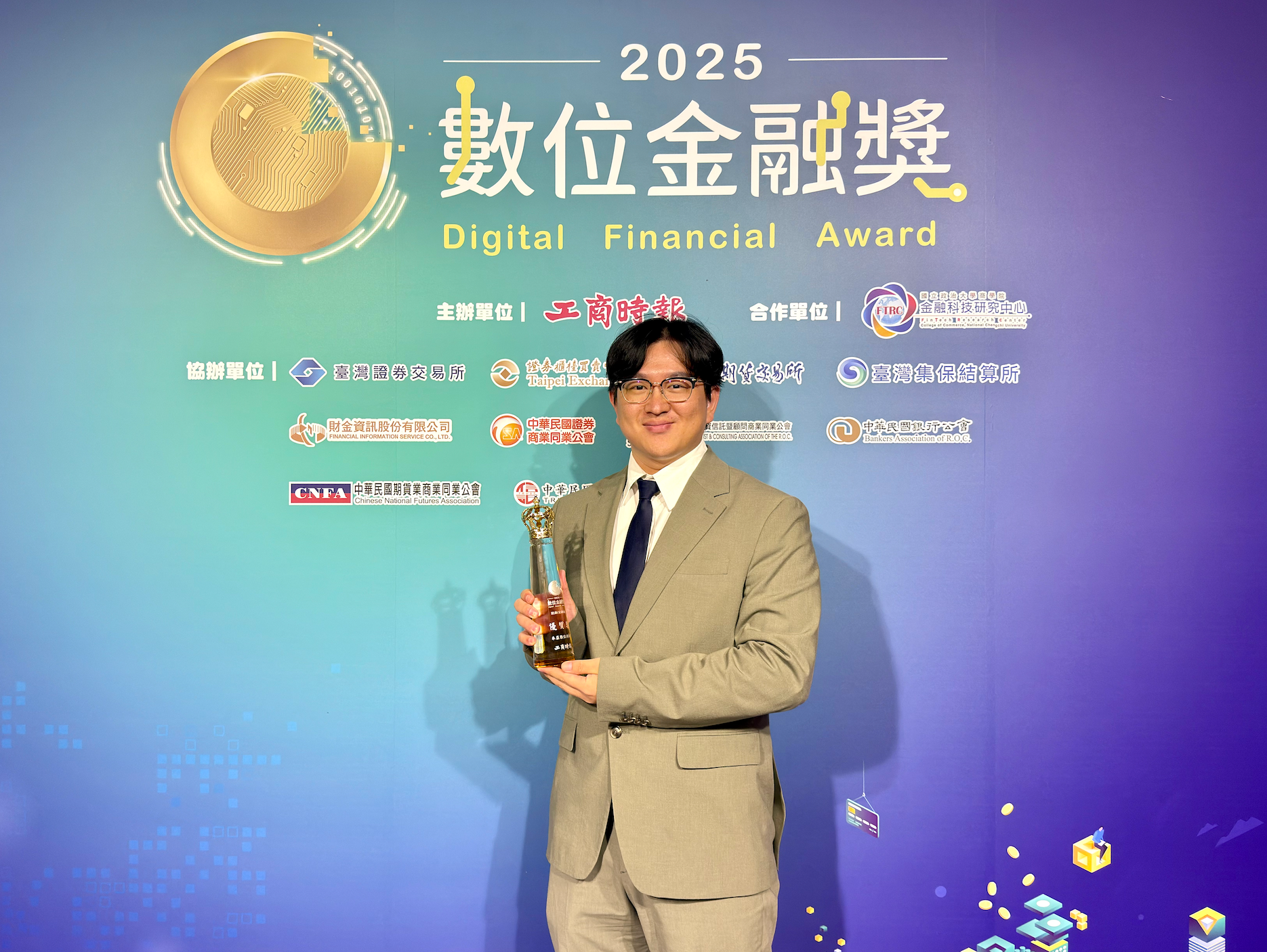 禾亞數位科技(HOYA BIT)榮獲第五屆「數位金融獎」創新金融組優質獎,由副總經理林逸騏代表領獎,成為唯一獲獎的虛擬資產業者。(圖_禾亞數位科技提供)