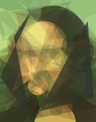 這不,用50個三角形、迭代10000次後,後現代抽象版蒙娜麗莎誕生了。