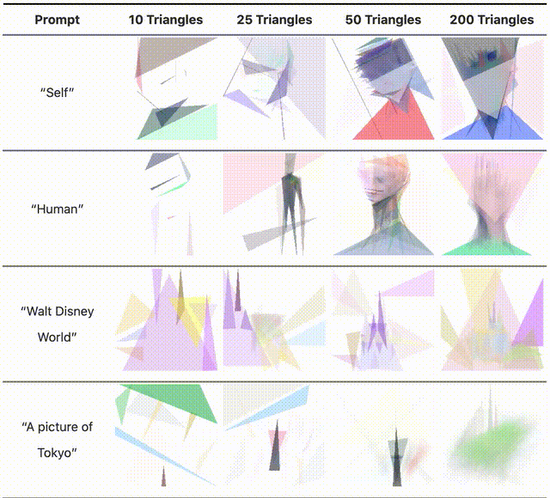 他們讓兩個AI相互配合,根據文字提示及具體圖像,用一堆三角形創作出了一幅幅極具特色的抽象畫。
