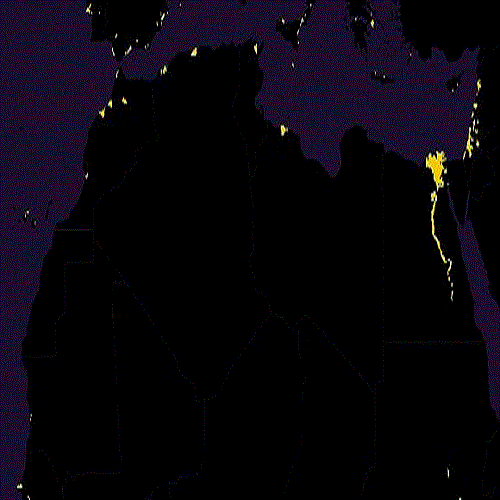 再看看北非地區,除了開羅以外幾乎都是黑色,但這個小黃格可是全球人口最密的地方,小小9平方英里的土地上住著100萬的人口。