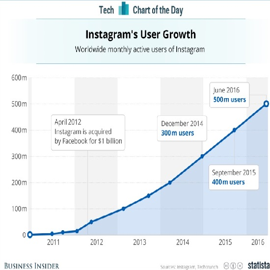 Instagram 還在官方部落格中表示,僅僅在過去的六個月時間裏,就有 1 億的用戶加入到 Instagram 中去。今年 6 月 21 日,Instagram 宣佈其用戶數量超過 5 億,而其用戶數量突破 4 億大關是在 2015 年 9 月。
