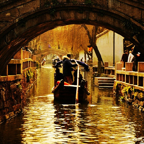 上有天堂,下有蘇杭,中間有個周莊。周莊,有著天下第一水鄉的美譽。蘇州昆山市的周莊因水成街,因水成路,水滋潤著周莊,水豐富著周莊,水是周莊的靈魂,水鄉小巷多,人家盡枕河。如果不是這古樸秀雅的明清民居,這一片流水也算平常,如果不是這一片流水的生機無限,那青瓦白牆原也顯素淡。在這裡,全鎮依河成街,橋街相連,深宅大院,重脊高簷,河埠廊坊,過街騎樓,穿竹石欄,臨河水閣,一派古樸幽靜,就這樣小橋、流水、人家完美地結合在一起。