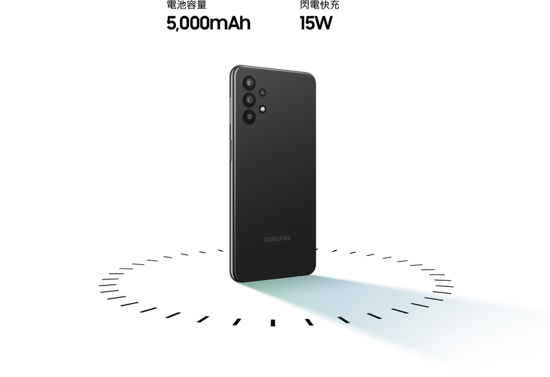 Galaxy A32 5G內建旗艦級5000mAh超長續航力電池,並且支援15W閃電快充功能,強調可以讓使用者從早使用手機到晚。