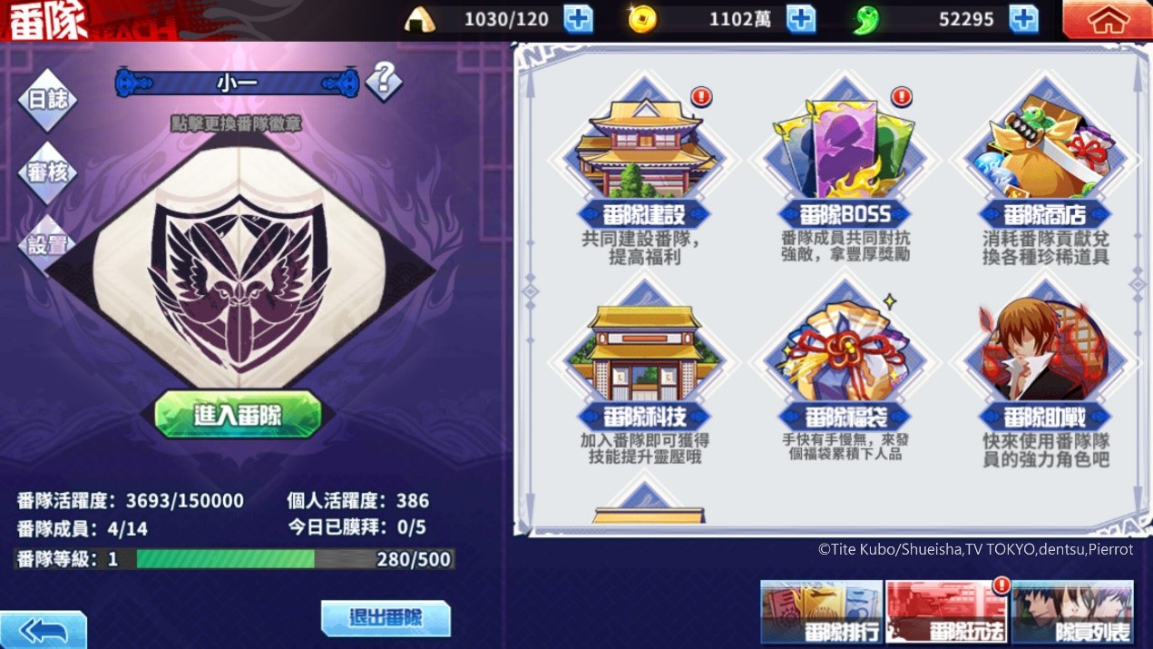 遊戲還有許多豐富系統構成。其中,「社交系統」更是彼此不能缺少的重要交流管道,玩家間可透過『番隊』作為相互聯繫的主要方式,在遊戲中「番隊系統」更是還原死神經典特色。透過建設、科技、商店、BOSS、福袋…等任務,加上可贈送體力的好友系統,讓大家在遊戲不再單打獨鬥,一起努力追求最後的勝利!