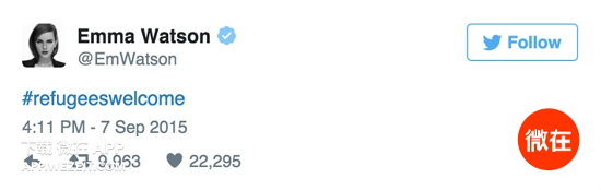 為什麼是艾瑪呢?今年跨年夜德國發生大規模性侵事件之後,歐洲對待難民的態度就出現了分化,讓本來就狂有爭議的難民問題變得更加嚴峻。艾瑪作為一個積極的女權主義者,從來沒公開說過任何反對難民的言論,去年還發過一個#歡迎難民的推,所以這次才會被點名的吧。