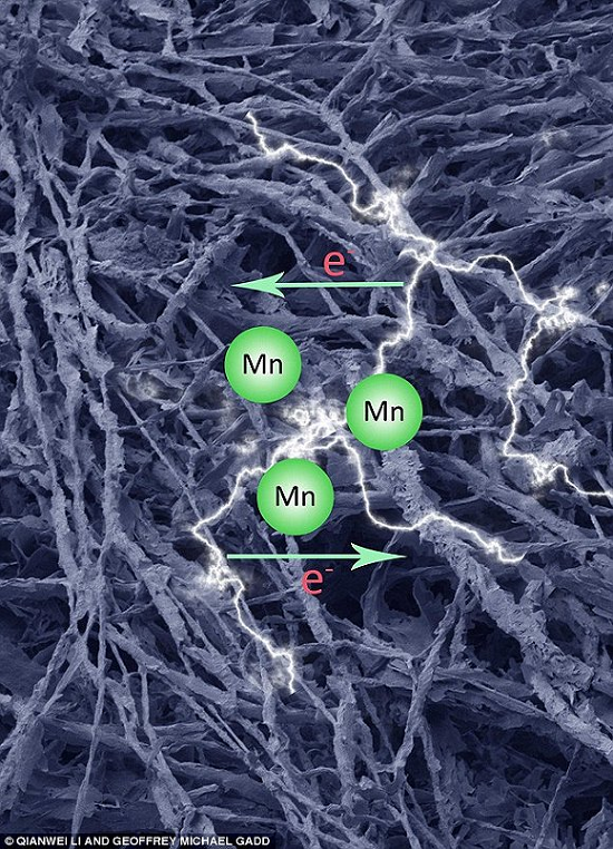 該科研團隊將粗糙脉孢菌與一定量的氯化錳和其它一些物質混合進行實驗。經過一段時間後,他們發現真菌菌絲體表面覆蓋著大量的碳酸錳。然後,把形成的混合物在300℃熱處理,得到了含有氧化錳的碳材料。