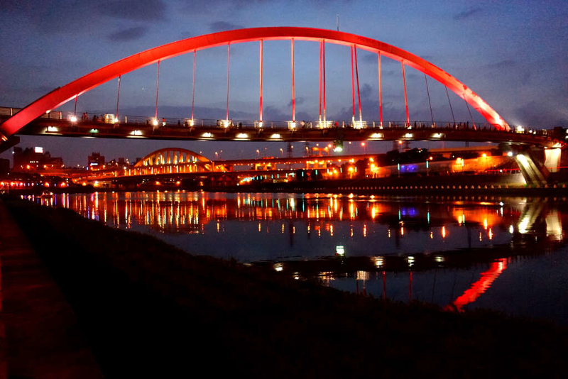 大紅色的橋身、S型的曲線橋體,以及整治過後的基隆河畔散步步道,再加上不開放汽機車通行,吸引了許多人晚上會來這裡散散步、坐著聊天,絕對是情侶們可以浪漫賞景的約會聖地之一。