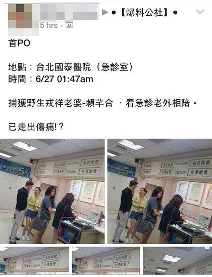 根據《蘋果日報》報導,今天(二十七日)凌晨戎祥遺孀賴芊合因為玩蠟燭,不慎用刀劃到手,造成兩公分的傷口。她立刻叫朋友陪她就醫,急診醫生縫合她的傷口時,狗仔竟然就在身邊。