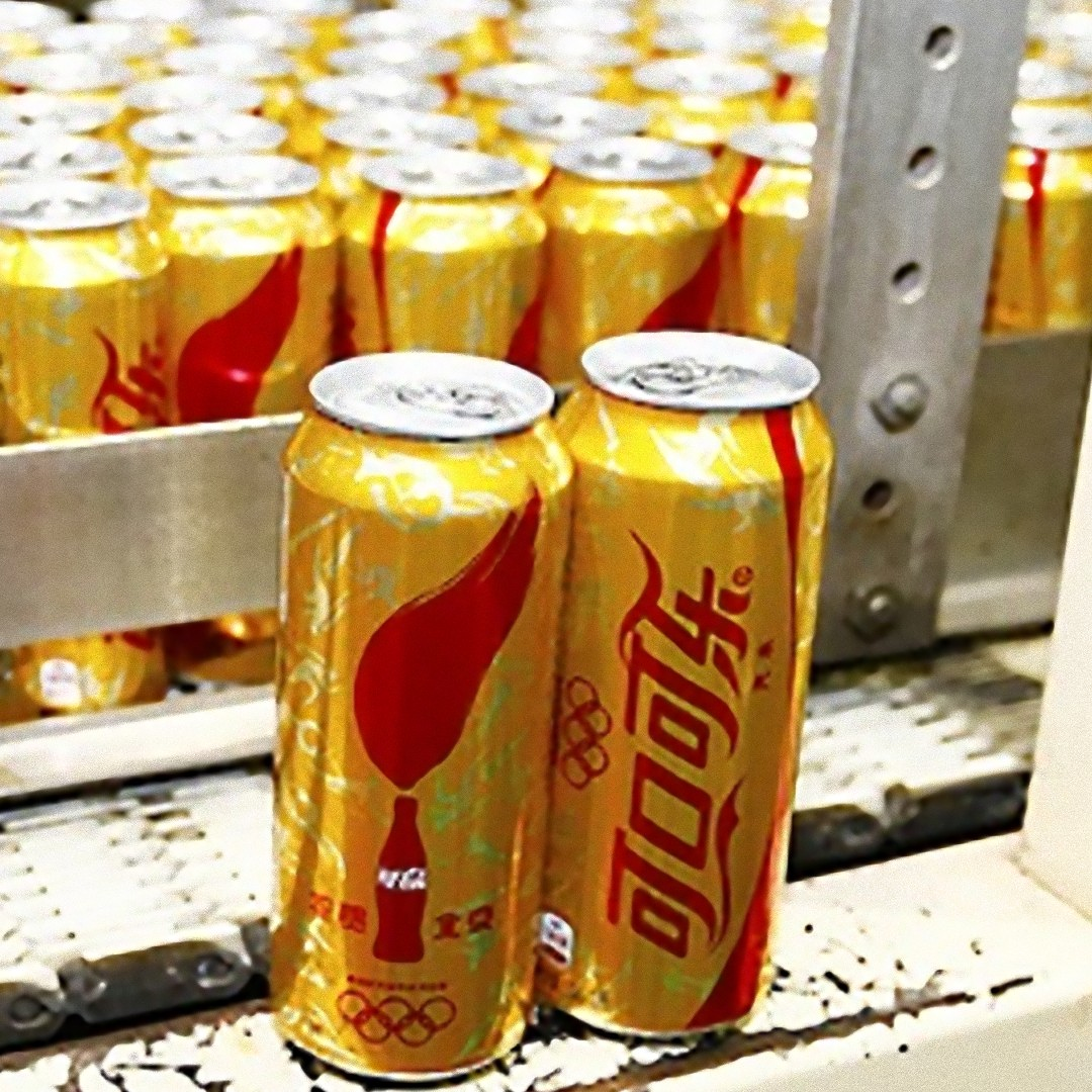 申辦成功消息傳來的同時,位於亦莊的北京可口可樂飲料公司,已經啟動生產線,7.2萬紀念罐陸續出廠,並連夜運往北京各大超市賣場。