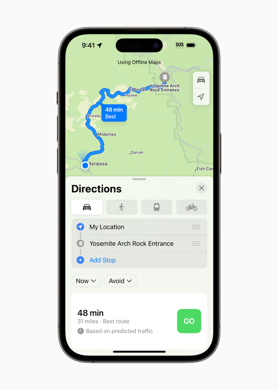 而在離線時,使用者將能夠使用包含駕駛、步行、大眾運輸和騎自行車的逐步導航功能,並且查看預計抵達時間。