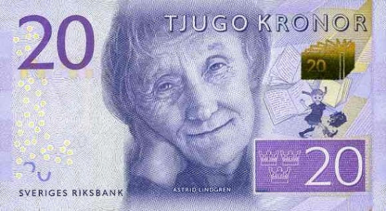 (瑞典的20克朗紙鈔。)