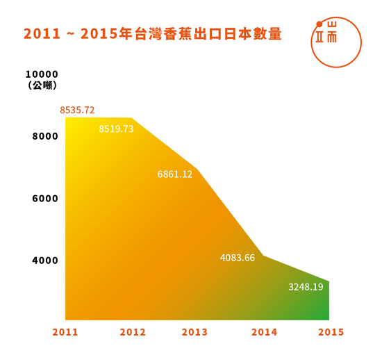 一路維持小農制度的台灣,在戰後特殊的「獨占」優勢消失後,漸漸淡出日本市場,外銷量一路下滑。近五年來,台灣香蕉出口日本數量自2011年的8535公噸,到2015年僅剩3248公噸,與1967年的38.2萬公噸相比,相差了118倍。台蕉輸日榮景早已成往事,如今已在谷底。