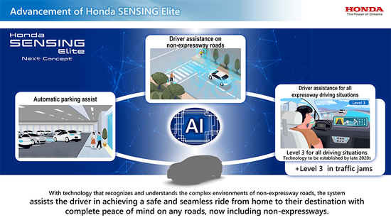 Honda SENSING Elite進化版系統導入了人工智慧(AI)技術,讓自動駕駛系統在車輛行駛過程中能做出接近真人駕駛的反應,藉此應對各種不同的複雜路況。