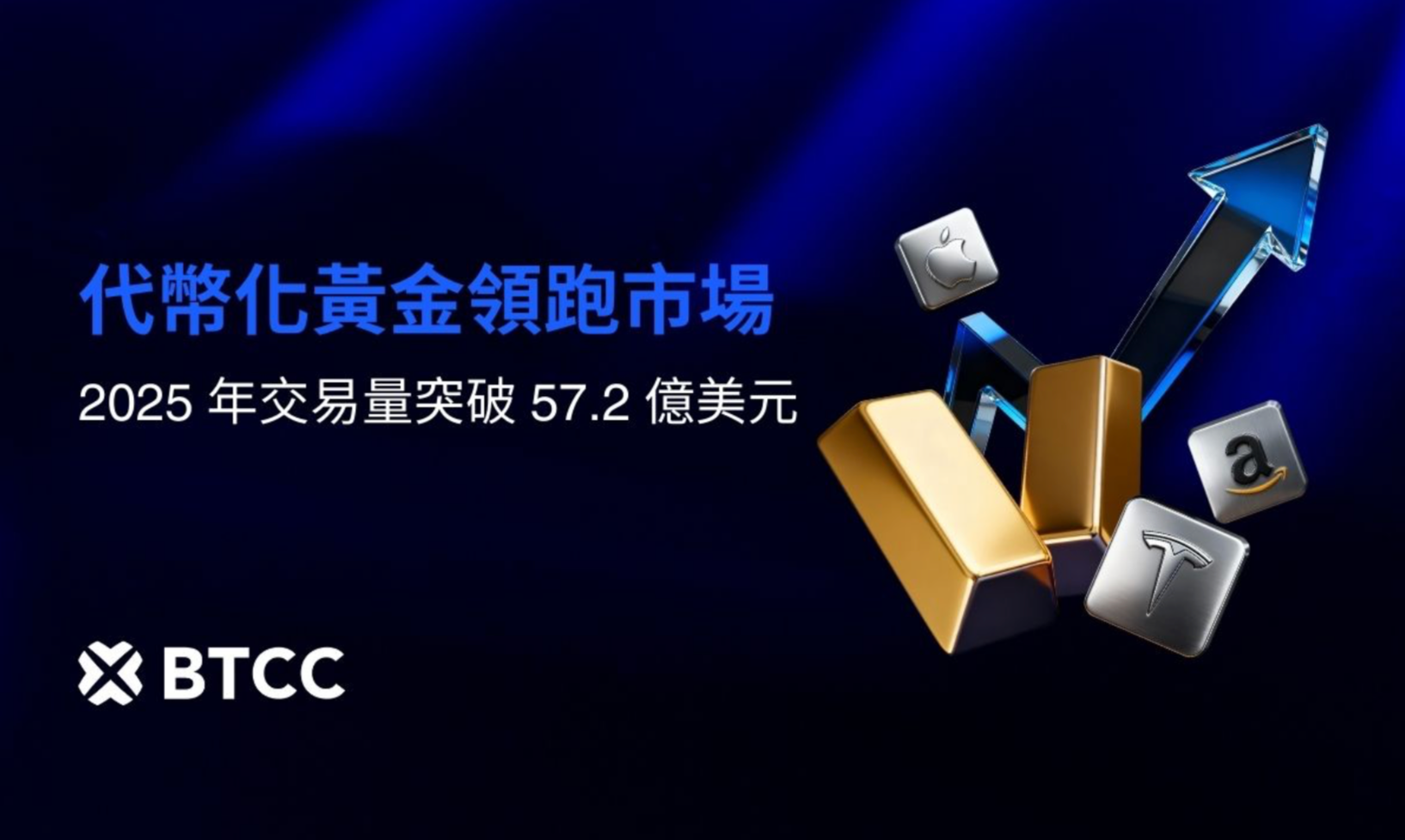 全球歷史最悠久的加密貨幣交易所 BTCC 表示,平台 2025 年代幣化黃金年度交易量正式突破 50 億美元關卡,全年累計達 57.2 億美元。