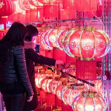 【圖說】喜慶工藝區規模較小,但是存在感一點也不少,此處商品的共同特徵在於「期間限定」,聖誕節必備的彩帶聖誕樹,春節張貼的彩球春聯,還有北京奧運的福娃、巴西世足賽的旗幟、眼鏡、加油棒,就從這裡直銷世界!