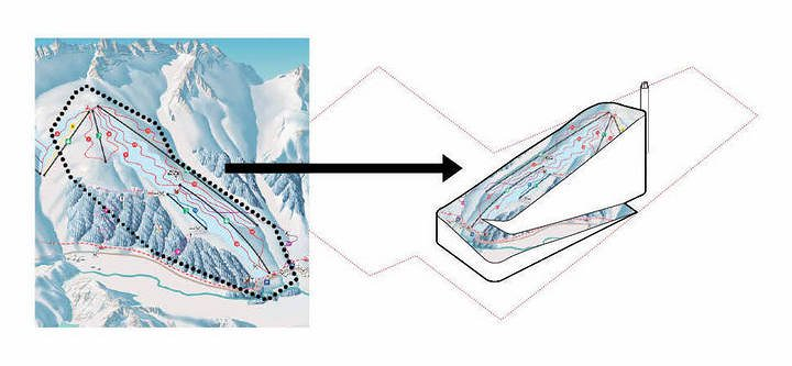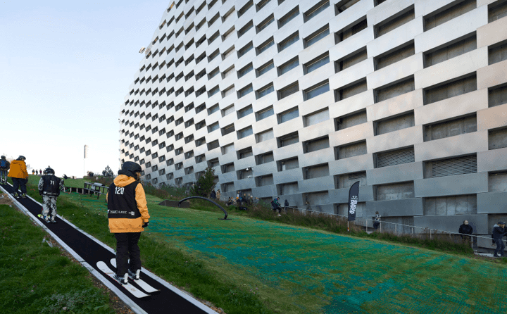 所以,那個傾斜的屋頂,就變成了一個佔地410000平方公尺的滑雪場。