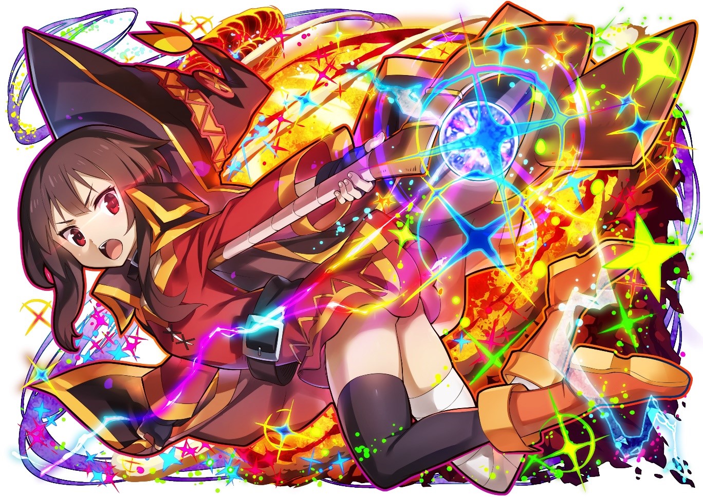 《召喚圖板》此次與《為美好的世界獻上祝福!》合作,也特別將原作中的熱門角色設計成各式棋寵推出聯名轉蛋,玩家有機會獲得最受注目的七星棋寵【紅魔族的爆裂娘・惠惠】,覺醒變身後的「大魔法師・惠惠」,具有高倍率攻擊力的火屬性隊長,技能每場可發動一次,使用全範圍極強的貫通傷害,用猛烈轟炸攻擊給予敵方高傷害值。且特別還原原作設定,設計獨有專屬技能動畫,讓玩家戰鬥中不僅充滿快感、還可以享受華麗動畫的視覺效果!