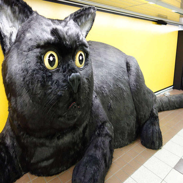 日本人真的太愛巨大化了,上次在河上弄了巨大的漂流迴轉壽司,這次新宿地鐵站裡又出現了一隻巨大呆萌的黑貓!