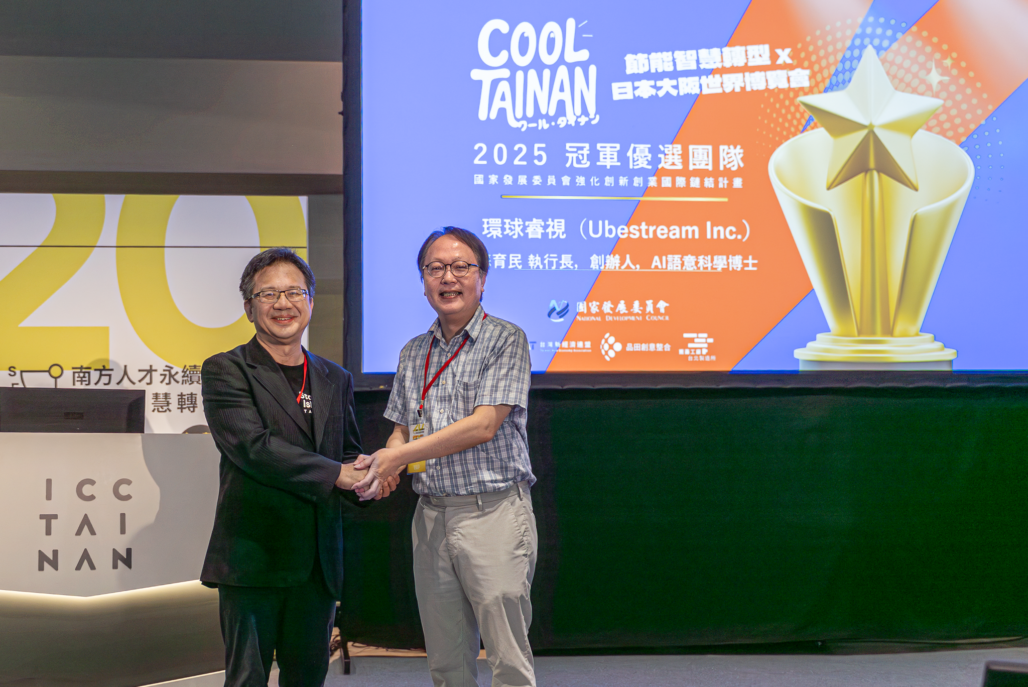 (環球睿視Ubestream獲國發會副主委詹方冠頒贈「Cool Tainan 智慧轉型獎」最高榮譽首獎,代表前往日本參與大阪世博論壇高峰會與國際記者會並以AIspeakin即時語譯代理人提供論壇及記者會多語即時翻譯及語譯)