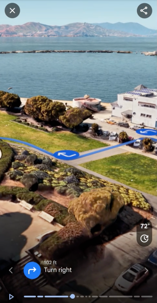 在今年的 I/O 大會上,Google推出了沉浸式路線視圖,該視圖使用人工智慧將數十億街景和空拍圖像融合在一起,以便使用者在出發前就可以了解目的地是什麼樣子。