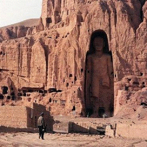 阿富汗 巴米揚大佛 :位於巴米揚山區的兩尊巨型佛像,始建於西元6世紀。佛像主體直接在沙岩山崖鑿成,再塗上色彩,以突顯佛像的面部表情。2001年1月,這尊大佛被企圖奪取政權的阿富汗塔利班炸毀。
